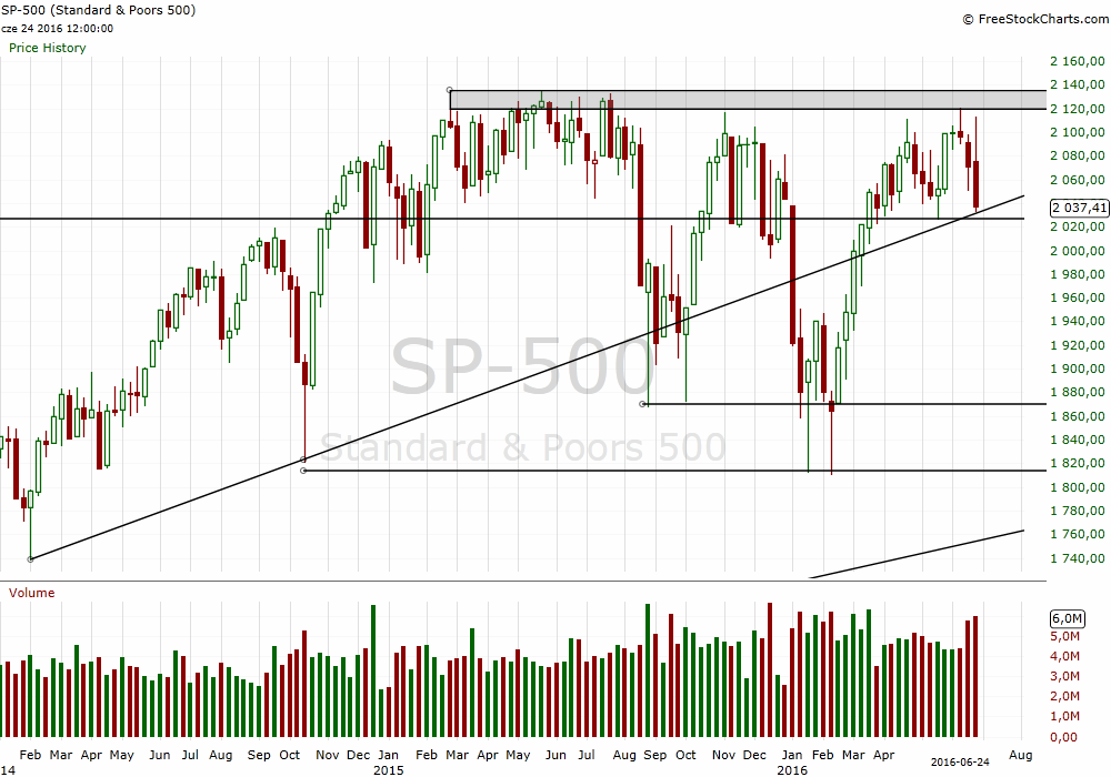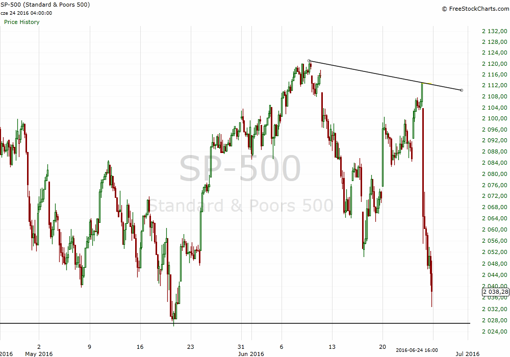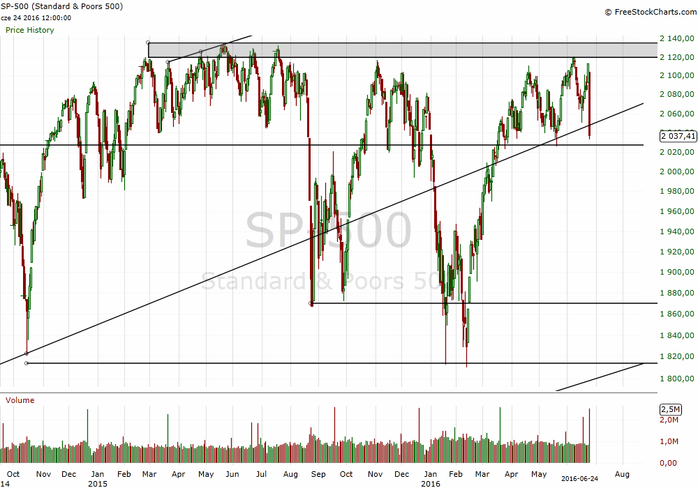 Welcome to S&P 500 analysis. Great moves on Friday, right after Brexit Polls. I think next week should be almost the same. Maybe not few percent gap, but anyway with nice volatility and volume.