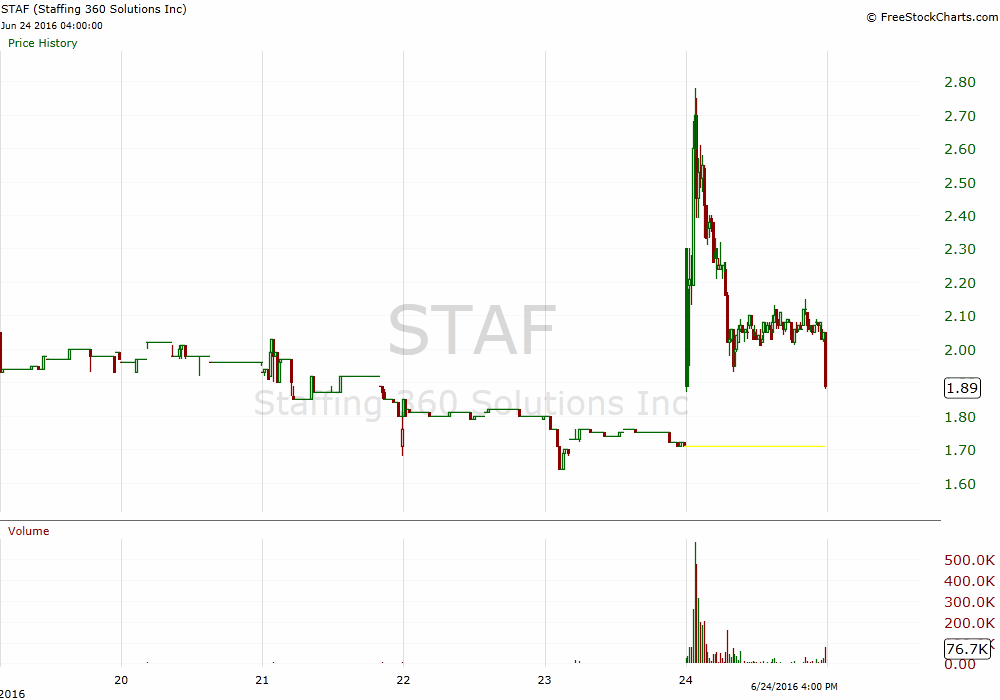 Let us check an example presenting the condition of one of companies within last few days. There was a quick increase in the value from $1.90 to $2.80 that was not backed by any news. Therefore, the value quickly reverted to its initial state.